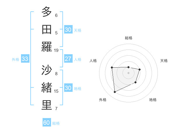 多田羅 沙緒里さんを姓名の画数から五運を鑑定
