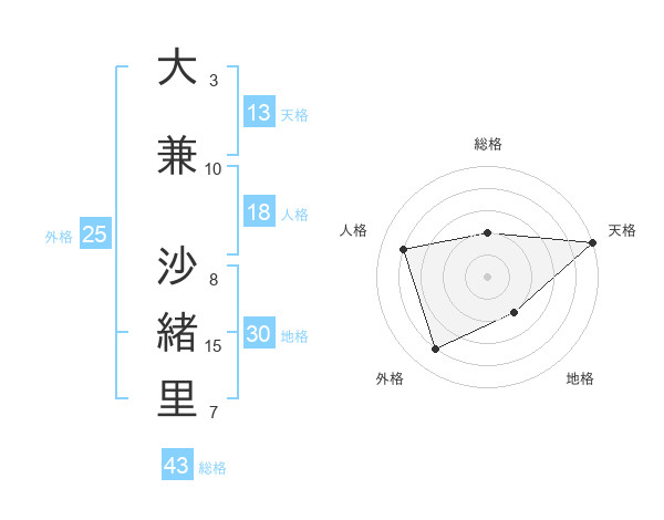 大兼 沙緒里さんを姓名の画数から五運を鑑定