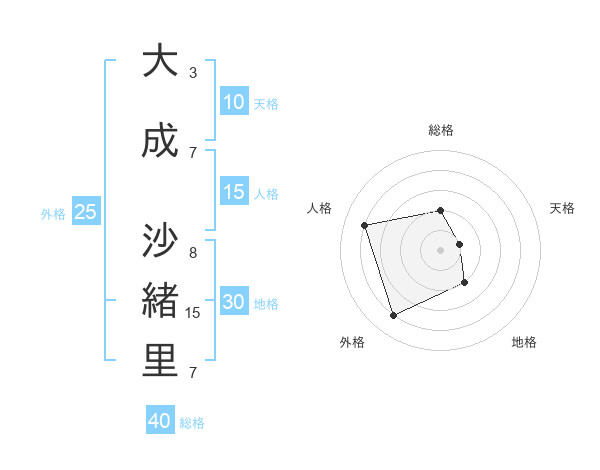 大成 沙緒里さんを姓名の画数から五運を鑑定