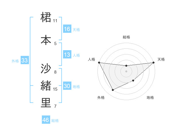 桾本 沙緒里さんの天格は16画の5点!