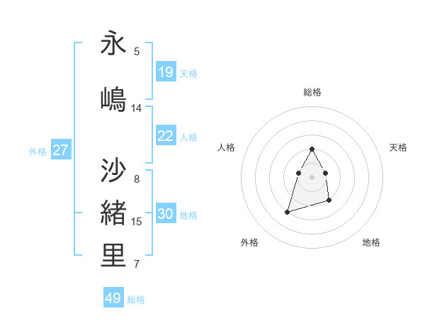 永嶋 沙緒里さんを姓名の画数から五運を鑑定