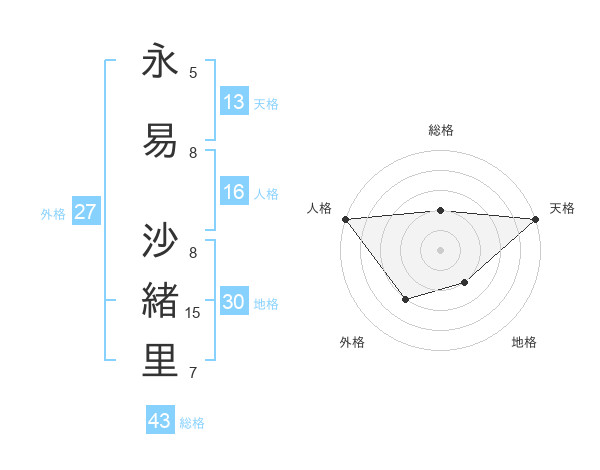 永易 沙緒里さんの天格は13画の5点!