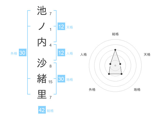 池ノ内 沙緒里さんを姓名の画数から五運を鑑定