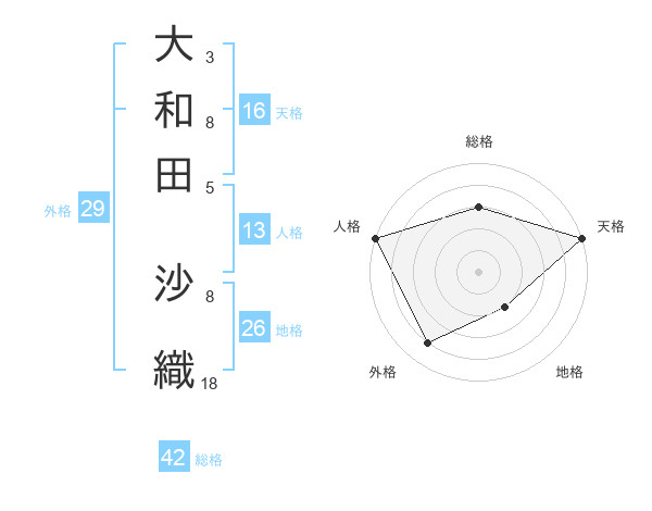 大和田 沙織さんを姓名の画数から五運を鑑定