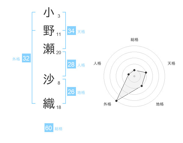 小野瀬 沙織さんを姓名の画数から五運を鑑定