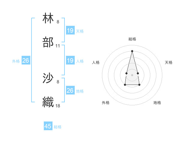林部 沙織さんの総格は45画の4点!