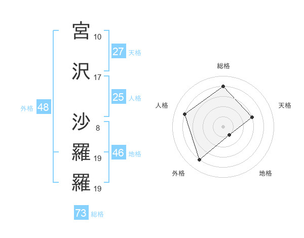 宮沢 沙羅羅さんの総格は73画の4点!