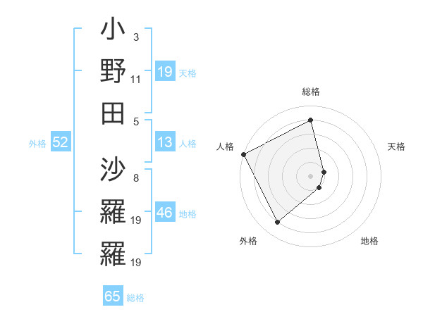 小野田 沙羅羅さんの外格は52画の4点!