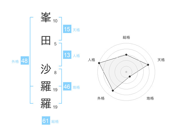 峯田 沙羅羅さんを姓名の画数から五運を鑑定