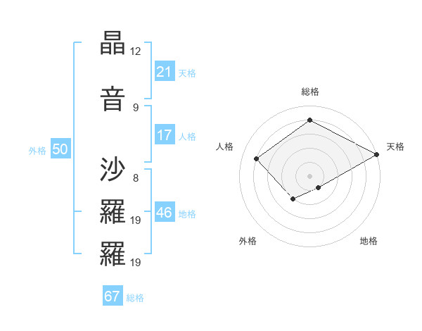 晶音 沙羅羅さんを姓名の画数から五運を鑑定