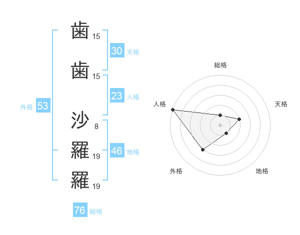 歯歯 沙羅羅さんを姓名の画数から五運を鑑定