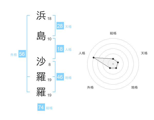 浜島 沙羅羅さんを姓名の画数から五運を鑑定