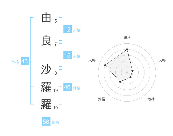 由良 沙羅羅さんを姓名の画数から五運を鑑定