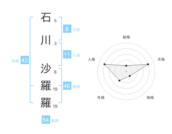 石川 沙羅羅さんを姓名の画数から五運を鑑定