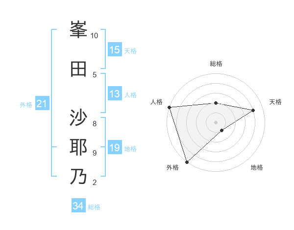 峯田 沙耶乃さんの総格は34画の2点!