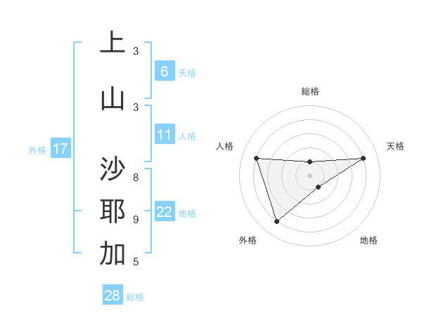 上山 沙耶加さんの外格は17画の4点!