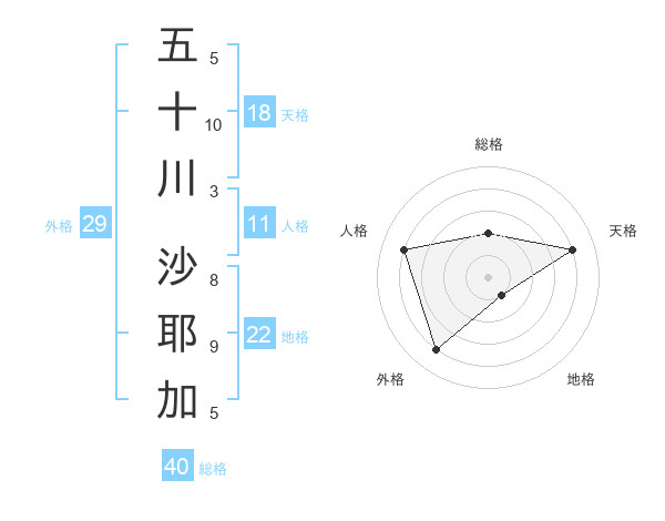 五十川 沙耶加さんを姓名の画数から五運を鑑定