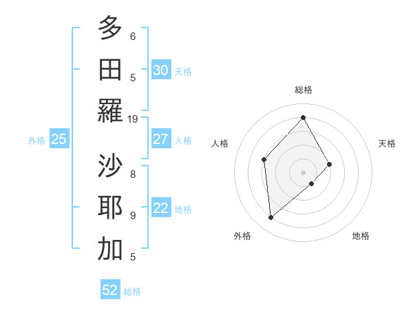 多田羅 沙耶加さんを姓名の画数から五運を鑑定