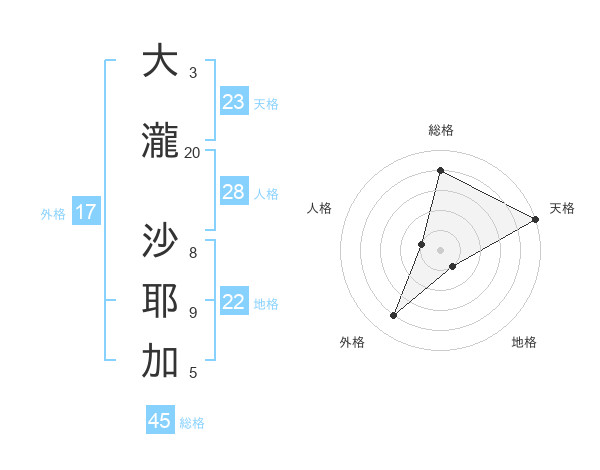 大瀧 沙耶加さんを姓名の画数から五運を鑑定