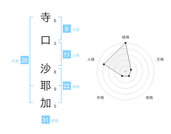 寺口 沙耶加さんを姓名の画数から五運を鑑定