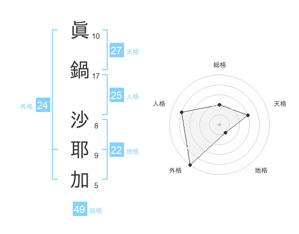 眞鍋 沙耶加さんを姓名の画数から五運を鑑定