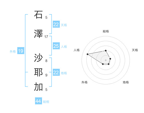 石澤 沙耶加さんを姓名の画数から五運を鑑定