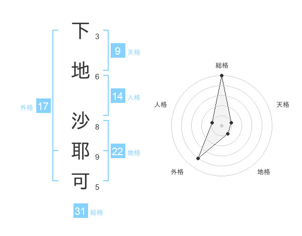 下地 沙耶可さんの外格は17画の4点!