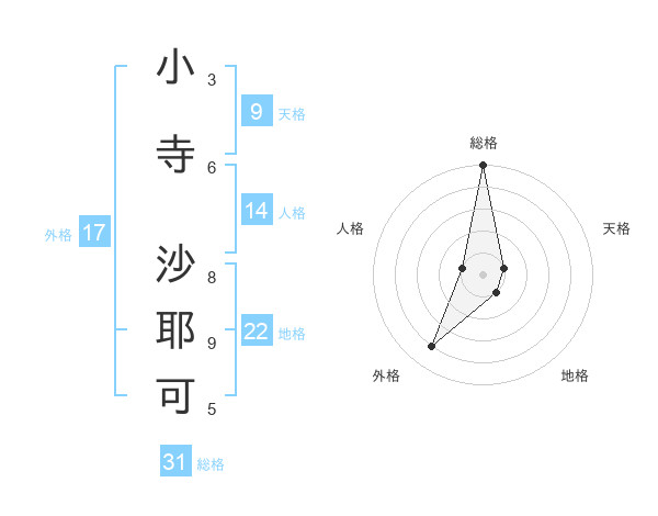 小寺 沙耶可さんの総格は31画の5点!