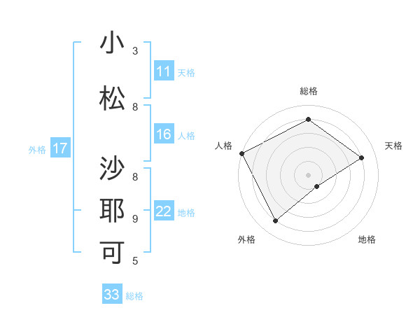 小松 沙耶可さんを姓名の画数から五運を鑑定