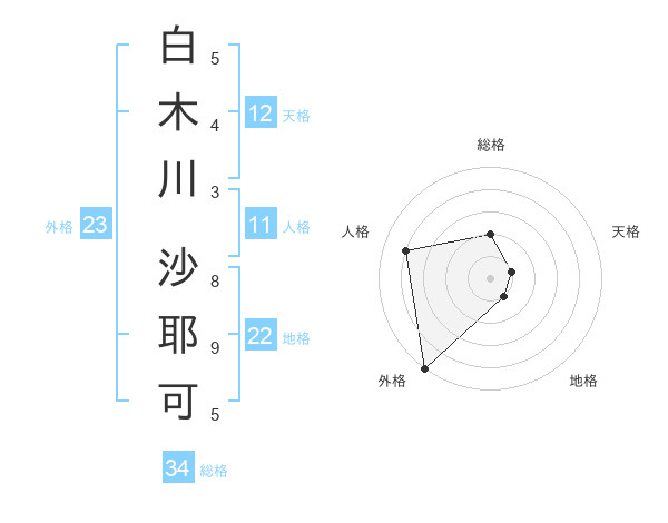 白木川 沙耶可さんを姓名の画数から五運を鑑定