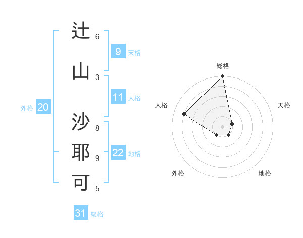 辻山 沙耶可さんの総格は31画の5点!
