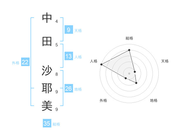 中田 沙耶美さんを姓名の画数から五運を鑑定