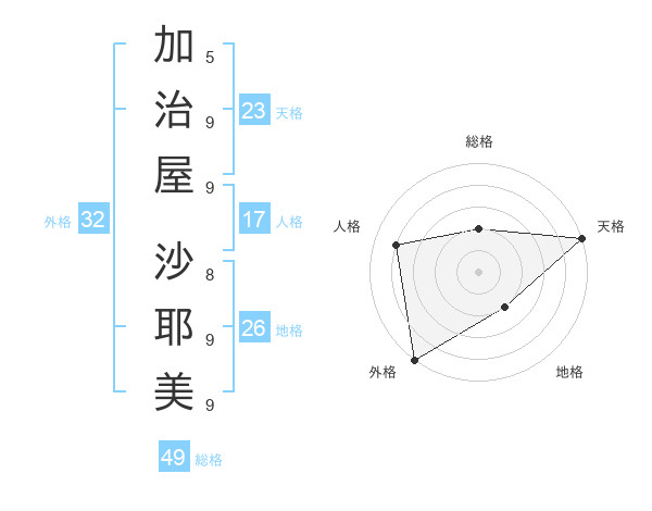加治屋 沙耶美さんを姓名の画数から五運を鑑定