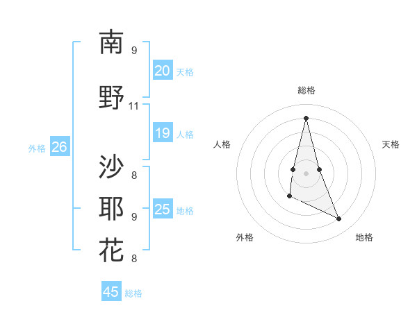 南野 沙耶花さんを姓名の画数から五運を鑑定
