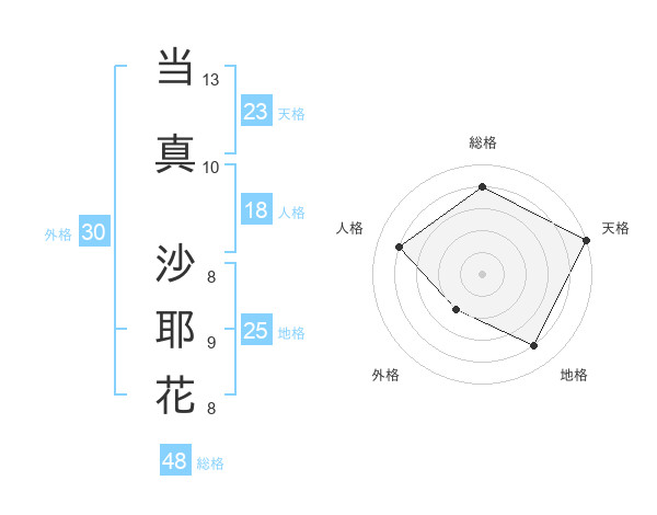 当真 沙耶花さんを姓名の画数から五運を鑑定