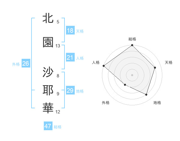 北園 沙耶華さんを姓名の画数から五運を鑑定