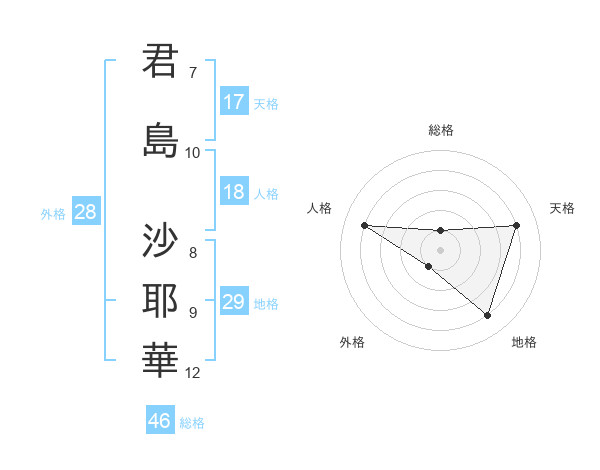 君島 沙耶華さんを姓名の画数から五運を鑑定