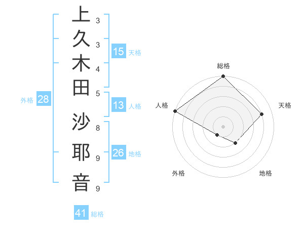上久木田 沙耶音さんを姓名の画数から五運を鑑定