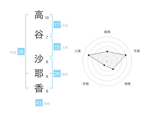 高谷 沙耶香さんを姓名の画数から五運を鑑定