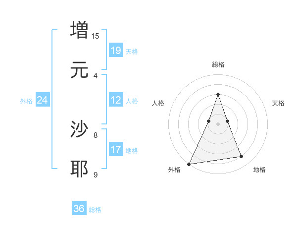 増元 沙耶さんの天格は19画の1点!
