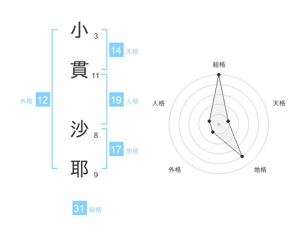 小貫 沙耶さんの総格は31画の5点!