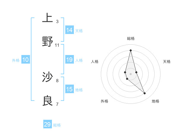 上野 沙良さんの総格は29画の4点!