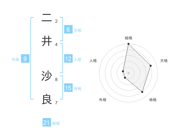 二井 沙良さんの総格は21画の5点!