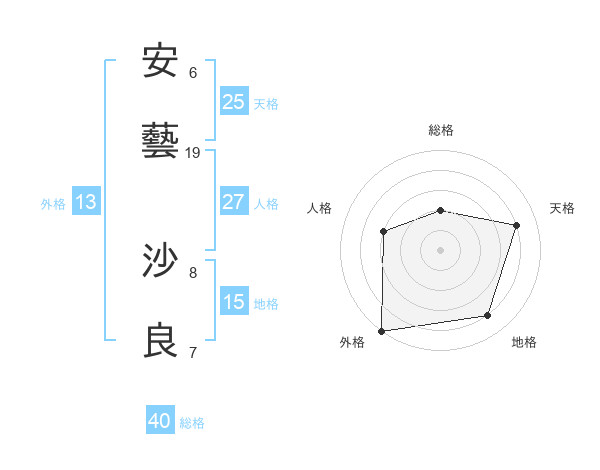 安藝 沙良さんの外格は13画の5点!