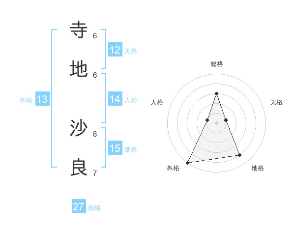 寺地 沙良さんの総格は27画の3点!