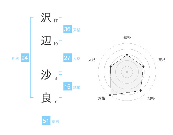 沢辺 沙良さんの外格は24画の5点!