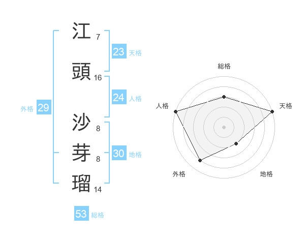 江頭 沙芽瑠さんを姓名の画数から五運を鑑定