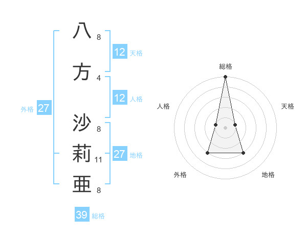 八方 沙莉亜さんを姓名の画数から五運を鑑定