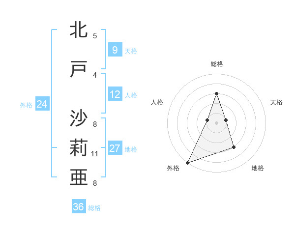 北戸 沙莉亜さんを姓名の画数から五運を鑑定