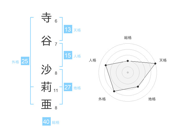 寺谷 沙莉亜さんの天格は13画の5点!